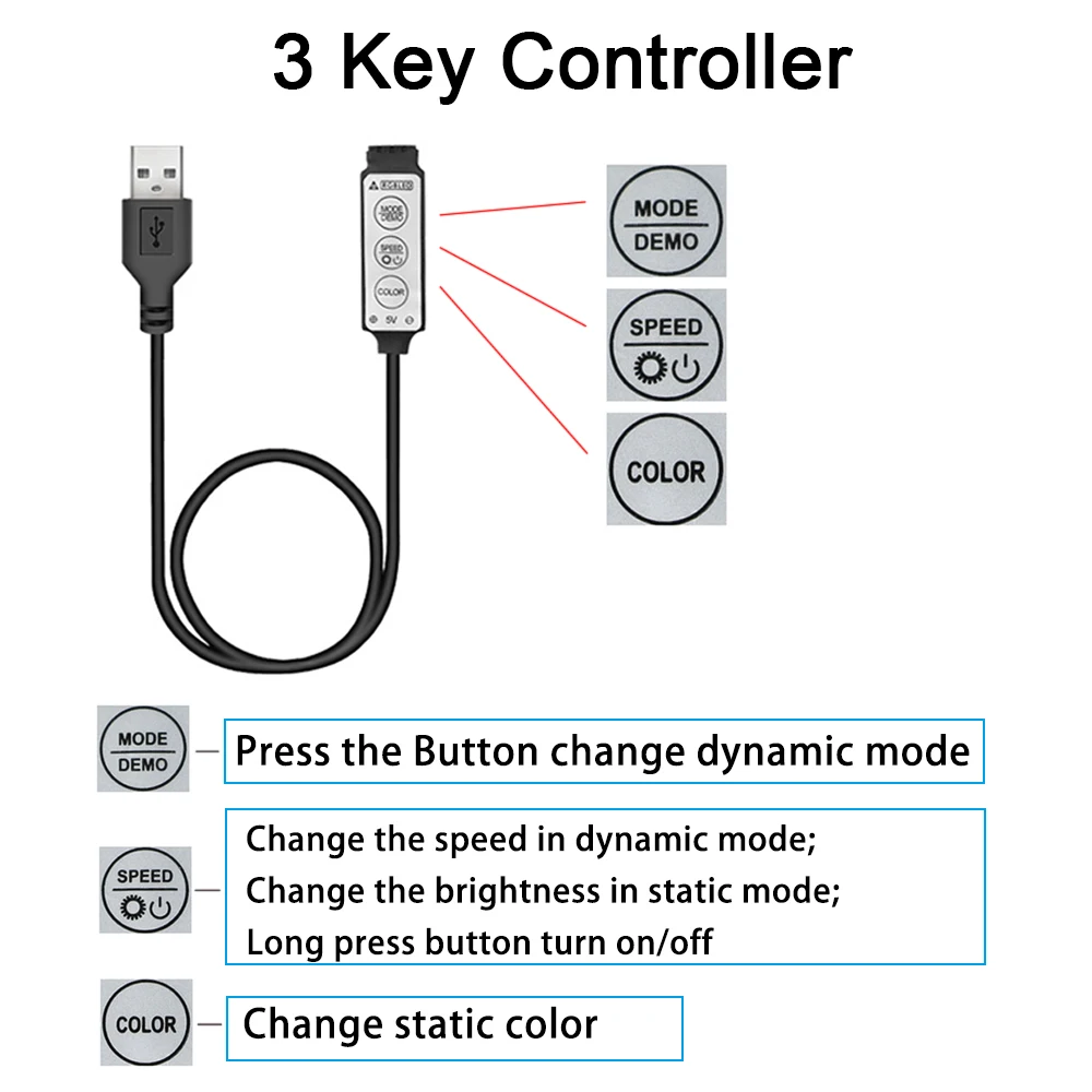 Battery Led Strip Lights RGB Led Strip Flexible Ribbon with 3Key Control Luces Led Tape Lights for Room Decor TV Backlights